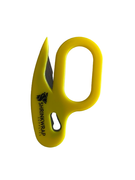 Small safety knife with recessed blade and able to be held by one or two fingers.
